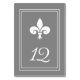 Elegant and simple Wedding Table Card featuring a fleur de lis against a Grey background. This design is a unique choice for a modern wedding. Easy to customise with the appropriate table number(s). Click "Customise It" to find more personalisation options.