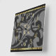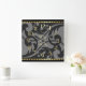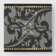 Grey Flourish Design Gold Border with Monogram Square Wall Clock