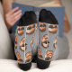 Funny custom face crew socks personalised with a photo and a grey background. Upload a cutout of the face with a transparent background and it will automatically be replicated all over the socks, on both sides. To make the cut-out, you can download any mobile or computer app, or use the program named Canva or Photoshop.