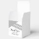 Modern and trendy Geometric Stripe Wedding Favour Boxes with a grey triangle and thinly striped accent. These simple yet elegant boxes are set up to be easily customised with your wedding information. Find more customisation options by clicking Customise It.