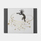 Kokopelli Gold Music Note grey Rug mat. Golden metallic designed musical note. Music rug in grey and black combination.  Mat Home Decor. Hand drawn gold music notes on a black  background,. Front or back door music note rug mat, Customise your text, colour, style on your Kokopelli  playing flutes mat to match your taste. Note: Gold Metallic design is not actual, this is hand drawn music notes design.