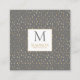 Grey Gold Raindrop Modern Trendy Monogram Square Business Card