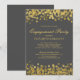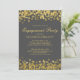 This elegant engagement party invitation features a dark grey background with gold twinkle confetti fading up from the top and bottom. Perfect for an elegant, modern themed event.