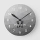Grey Gradient Geometric Mesh Pattern Monogram Round Clock