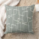 Grey-Green Retro Lino Print Geometric Pattern Cushion