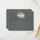A dark grey green flat wedding reception enclosure card featuring an elegant bouquet/posy of hand painted snowberries and eucalyptus on the front and a wreath on the back of the card. All text is fully editable and the scattered dots on the front and back can be deleted before ordering if you would prefer. This card is available with alternative botanical designs, in a portrait format, and in different colours. Please view the Collection in my store to see all options and coordinating items.