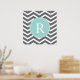 Grey Grey Mint Chevron Monogram Poster