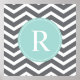 Customise this vibrant grey / grey, white and mint teal turquoise chevron pattern and monogram design with your initial.