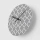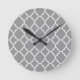 Grey Grey White Quatrefoil Moroccan Pattern Round Clock