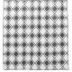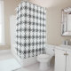 This shower curtain has a mid-century modern design of solid grey diamonds inside grey diamond outlines on a field of white.