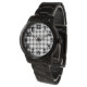 This women's watch has a mid-century modern design of solid grey diamonds inside grey diamond outlines on a field of white.