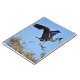 Grey heron (Ardea cinerea) arriving at the top of a tamarix tree in the Camargue is a natural region located south of Arles, France, between the Mediterranean Sea and the two arms of the Rhône delta