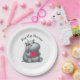 This charming paper plate will have you celebrating in style with this adorable hippo-theme birthday table accessory. The design features a cute whimsical grey hippo sitting up, wearing his little party hat while happily munching on a watermelon slice, bringing a playful and cheerful vibe to the party. The message says 'hip hip hooray' perfect for a celebration.