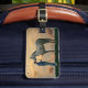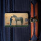 Grey Horse And Groom OTTB, Luggage Tag. Digital Art. "The Turnout". Grey horse stands with his groom in an evening field at sunset. Design works for horse lovers, horse farms, racing, equine sports, and also thoroughbred aftercare. Edit the information as needed.
