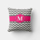 Grey Hot Pink Chevron Monogram Pillow