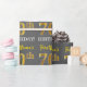 This wrapping paper design features a message like "FirstName’s 70th BIRTHDAY!", with the "70th" having a faux/imitation gold-like colour appearance. The name can be personalised, and the background is coloured grey (grey). It could perhaps be used when wrapping gifts being given for somebody’s seventieth birthday. [~Z0000185]
