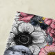 Hand- drawn vector pattern with various flowers, leaves, and grey jay birds