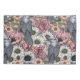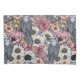 Hand- drawn vector pattern with various flowers, leaves, and grey jay birds