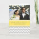 Photo Just married announcement card with elegant bright lemon yellow, grey and white casual and retro chevrons zigzags stripes pattern, unique and stylish, customisable with your names, your own photo, and wedding date, the perfect way to share your happy news with family and friends.