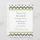 Fifth wedding anniversary party invitation card in fun and modern dark charcoal grey, bright lime green and white chevron retro zigzags stripes pattern, elegant and contemporary. Customisable with your party details.