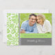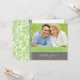 Elegant wedding vow renewal custom photo template invitations in chic and elegant bright apple green, charcoal dark grey and white classic vintage damask floral pattern with fully customisable text to include your vow renewal ceremony details. Contact us for a custom colour.