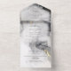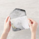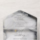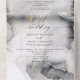 Elegant gold and shades of grey and black alcohol ink stains accented with gold veins like you would see in a beautiful marble geode - all in one wedding invitations with pre-addressed detachable meal choice rsvp for your guests to easily mail back - Easy to customise template.