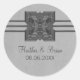 Regal and elegant Medallion Border Wedding Stickers featuring a digital art metallic medallion and a three stripe border on a light grey background. These bold and stylish wedding stickers are perfect for an equally bold and stylish wedding and are great for favours or envelope seals. Easy to customise, simply add the details of your wedding in the text fields provided. Click on "Customise It" to find additional personalisation options such as changing fonts or text size.