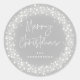 Grey Merry Christmas Script Sparkling Lights Classic Round Sticker
