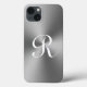 Grey metallic Case-Mate Phone Case Apple iPhone 13. Personalised phone cover with name initial and shiny grey background texture. Trendy Birthday or Christmas gift idea. Also available for older models and other brands. Customisable colours.