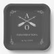 Personalise a unique paper plate for wedding reception guests with a set of Grey Monogram and Arrows Wedding Paper Plates. Paper Plate design features crossed arrows and monogram placement adorned with elegant corner flourishes. Personalise with the groom and bride's names along with the wedding date. Additional wedding stationery available with this design as well.