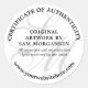 Elegant round certificate of authenticity stickers with black text and your monogram in light grey. Personalised certificate of authenticity stickers with your name, monogram, and website.
