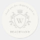 Grey Monogram Floral Crown Crest Order Thank you Classic Round Sticker