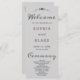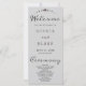 Turn to the back, and you'll find a carefully curated list of the wedding party. The text is elegantly presented in classic black and grey, utilising a simple block font for a clean and sophisticated aesthetic. The words "Welcome," "Ceremony," and "Wedding Party" are adorned in a beautiful decorative script font, adding a touch of romance and whimsy to the overall design.