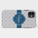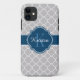 Grey Moroccan Quatrefoil Pattern Blue Monogram Case-Mate iPhone Case