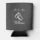 Grey Mr and Mrs can coolers with shiny sparkly wedding rings. Personalised Mr and Mrs wedding can coolers for bride and groom. Custom aqua / azure / turquoise blue and white wedding can coolers with cute heart and little ribbon bow. Classy design with name or monogram letters. Cute love symbol design for future husband and wife. Create your own unique cosy wedding favour / souvenir for guests at your party too. Romantic theme beverage holder design. Perfect for alcoholic drinks like beer. Also available for bottles. Elegant script typography. Custom double sided cosy cooler for chic wedding, fancy bridal party, funny bachelor party etc. Just married and wedding date.