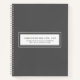 Modern notebook features a minimal design in navy blue and white. Custom name, title and company name presented in a framed window in classic block typography.