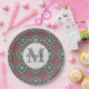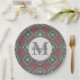 Grey Nordic Snowflake Winter Pattern Monogram Paper Plate