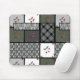 Grey Olive rustic patchwork pattern Mouse Mat