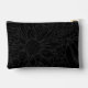 This cosmetics bag features an oversized line art drawing of chrysanthemums in grey over a black background on both sides and with a personalized name on one side. Original art from Dogwood & Thistle.