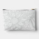 This cosmetics bag features an oversized line art drawing of chrysanthemums in grey over a white background on both sides and with a personalized name on one side. Original art from Dogwood & Thistle.