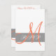 Use this stylish RSVP card to match with the wedding invitation in the store with the cooperplate font. You can change the text to add your saying and the choice of meals. Grey, White and Orange Wedding RSVP Card with Your Monogram and Names in a simple, yet elegant design. ELKE CLARKE © for Monogram Gallery. Shown on basic white paper.