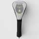 This owl design golf club head cover is an accessory that you slide over the head of a golf club for protection against knocks whilst sitting in your golf bag. Made out of polyester, cotton, and marine vinyl with a choice of different piping colours. You can customise this golf club head cover with any text. Should you require any help with customising then contact us through the message link on this page. Grey owl design golf club head cover.