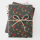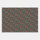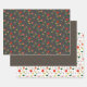 Red and yellow wildflowers. Grey pattern Wrapping Paper Sheets.