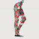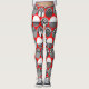 These leggings have a geometric design of ovals with different patterns in grey in each half all on a field of red.