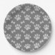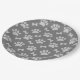 A pattern made of puppy paws and bones. Custom paper plates in white and grey for party decor.