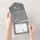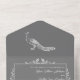 Invite guests to your upcoming wedding with a Grey Peacock Flourish All in One Wedding Invite. Invite design features an elegant peacock adorned with flourishes with a perforated response card. Personalise with the groom and bride's names along with the wedding date and location. Additional wedding stationery available with this design as well.