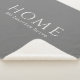 Personalise your living space with this cosy custom design in rich medium grey. Contrasting light grey type face has the word "HOME" in modern large lettering with your address below. Personalise the text with your address. This item makes a wonderful gift or treat for yourself. There really is no place like home!