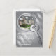This new home announcement features a key ring with a key attached representing the key to your new home. The key is silver and the keyring holds a space to insert a photo of your new home. The postcard is silver with stripes. Very modern and unique with clean lines. If you're moving into a new place this is great to send to your friends and family.