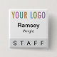 Grey Pinback Staff Badge Event Logo Square Name