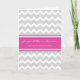 Just married announcement card with elegant bright fuchsia hot pink, grey and white casual and retro chevrons zigzags stripes pattern, unique and stylish, customisable with your names and wedding date, the perfect way to share your happy news with family and friends.